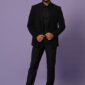 Black Cutdana Embroidered Blazer Set For Men