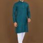 Royal Blue Embroidered Rayon Kurta Set For Men