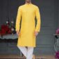 Yellow Embroidered Jacquard Kurta Set For Men