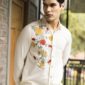 Off White Embroidered Handwoven Cotton Saad Shirt For Men