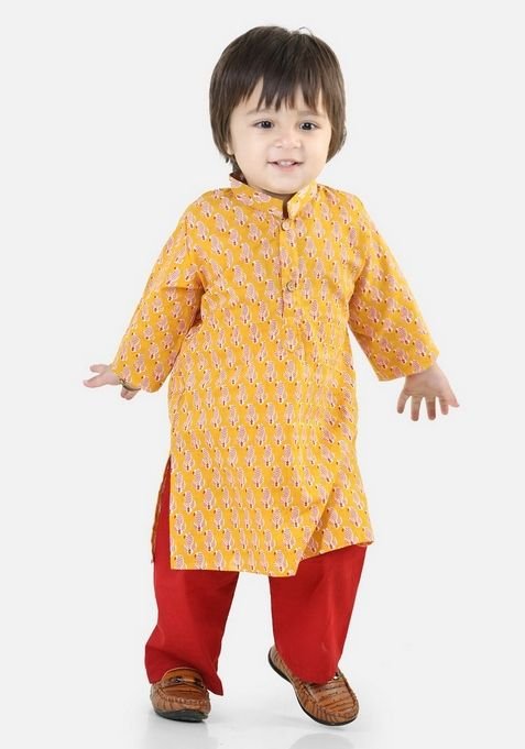 Yellow Printed Kurta With Pants (Set of 2)