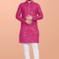 Pink Embroidered Cotton Blend Kurta Set For Men