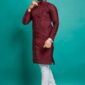 Maroon Embroidered Silk Kurta Set For Men