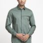 Olive Pintuck Embroidered Giza Cotton Shirt For Men