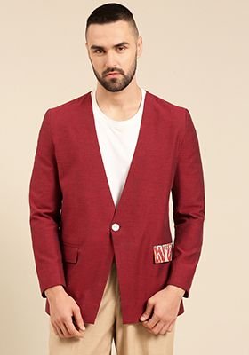 Wine Printed Cotton Blazer For Men