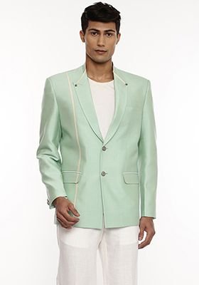 Pastel Green Silk Blazer For Men