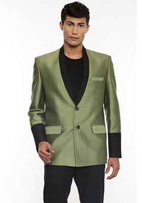 Green And Black Two Button Blazer For Men