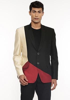 Black And Beige Three Colour Blazer For Men