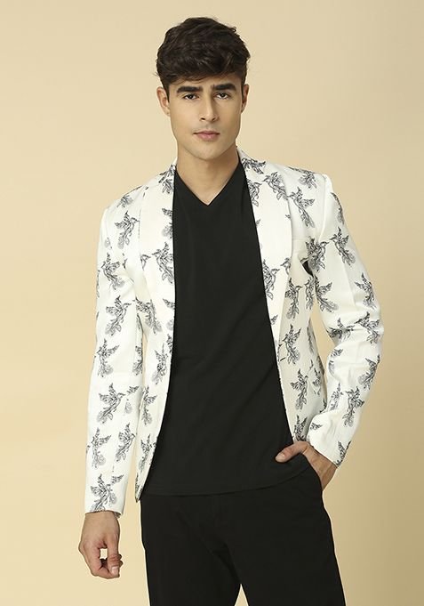 White Bird Printed Blazer With Front Pocket For Men