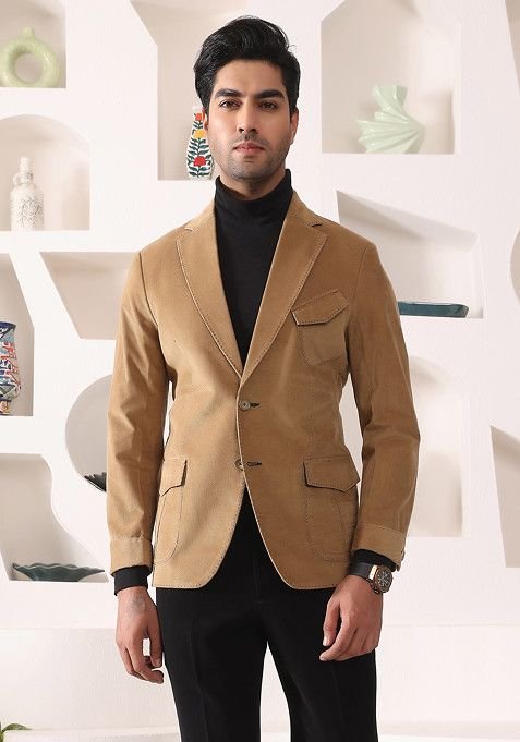 Beige Corduroy Blazer For Men
