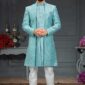 Dusty Aqua Blue Embroidered Indo Western Jacket And Kurta Set For Men