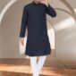 White Embroidered Cotton Kurta With Pyjama For Boys