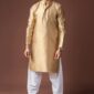 Lime Green Printed Cotton Straight Kurta Set For Men