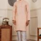 Pink Embroidered Cotton Blend Kurta Set For Men