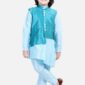 Blue Jacquard Jacket With Kurta And Pyjama (Set of 3)