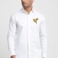 White Origami Bird Embroidered Shirt For Men