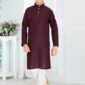 Wine Cotton Blend Kurta Set For Boys