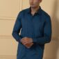 Teal Blue Plain Giza Cotton Shirt For Men