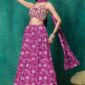 Rani Pink Lehenga Set With Floral Pearl Hand Embroidered Blouse And Choker Dupatta